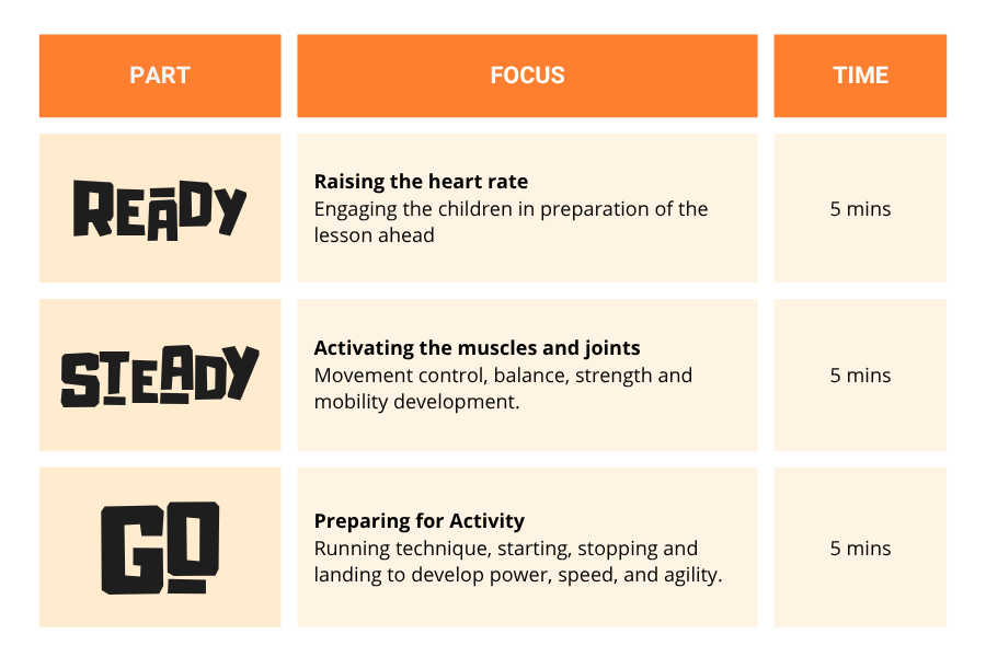 Ready, Steady, Go is an integrative framework for children that develops muscular strength, improves physical literacy, and protects against injuries.